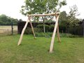 De Robinia houten schommel 4 haken past dankzij zijn natuurlijke ontwerp harmonieus in iedere tuin. Door de betonverankering blijft de constructie stevig en veilig, zelfs bij intensief gebruik of harde weersomstandigheden. Het frame is volledig voorgemonteerd geweest en schommelhaken zitten voorgeboord in de bovenbalk. Geen aanvullende boor- of zaagwerkzaamheden nodig!
